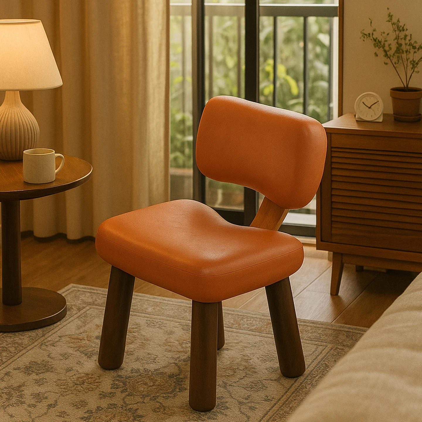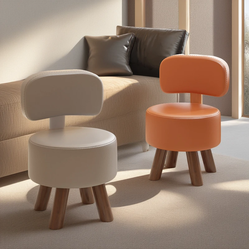 おしゃれなリビングにぴったり!家庭用背もたれ付きスツール、シンプルでコンパクトなデザイン。靴を履く時やティータイムに最適なローチェア。大人も使える快適な座り心地で、どんなインテリアにもマッチします!