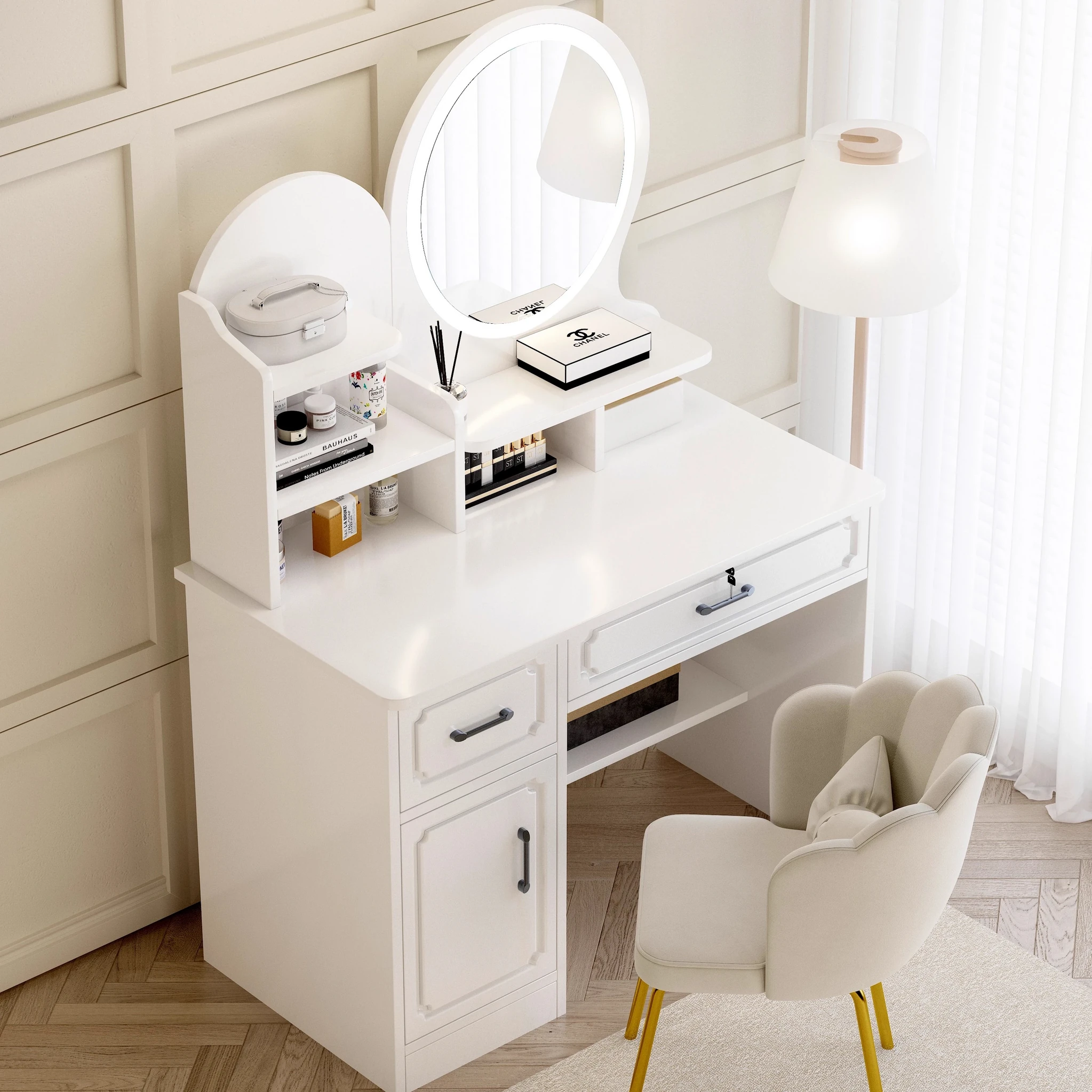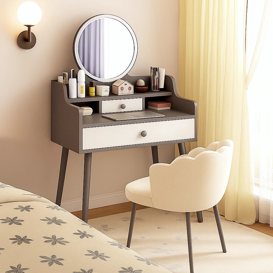 2025年新作!モダンシンプルな女性用小型ドレッサー、角落にぴったりの収納機能付き。おしゃれな寝室や書斎に最適なデザインで、毎日のメイクアップを楽しく!