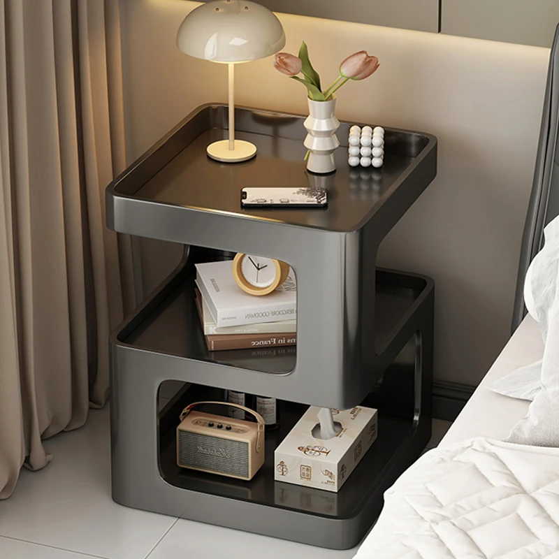Modern Black Iron Bedside Table - Minimalist Small Nightstand with Creative Storage Solution for Bedroom, Stylish Side Table and Organizer