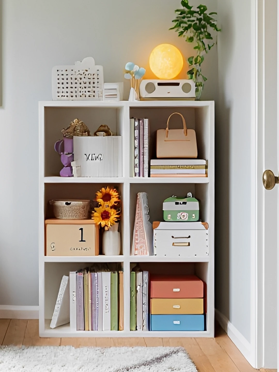 Creamy Minimalist Modular Bookshelf - Versatile Floor Storage Unit with Easy-to-Arrange Cube Design for Small Spaces - Perfect Corner Bookcase for Stylish Organization