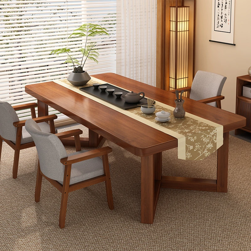 Elegant New Chinese Style Tea Table and Chair Set for Home and Office - Rectangular Tea Station for Balcony, Ideal for Tea Brewing and Work Tasks