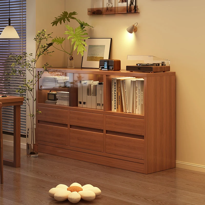 Solid Wood Combination Cabinet - Stylish Low Storage Unit for Living Room, Wall-Mounted, Free-Standing Organizer, Natural Wood Finish, Perfect for Bedroom or Entryway.