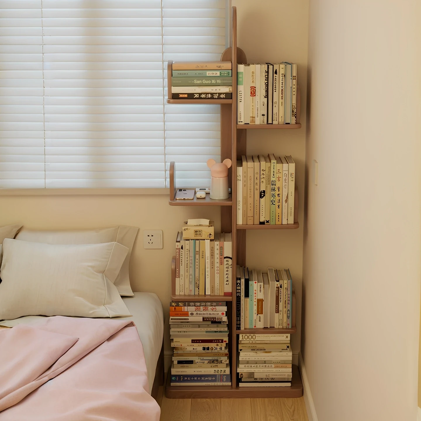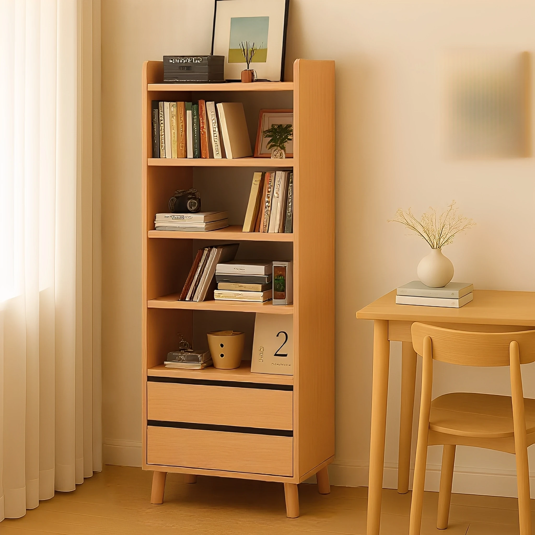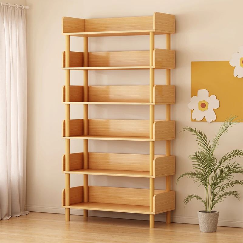 Natural Wood Color Bookshelf - Floor-Standing Storage Rack, Wall-Mounted Home Organizer for Bedroom, Nightstand, Living Room Display & Storage Cabinet
