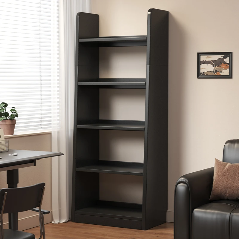 Vintage Black Trapezoidal Bookshelf - Elegant Floor Storage Cabinet for Bedroom, Multi-Layer Organizer, Stylish Bookcase and Storage Solution