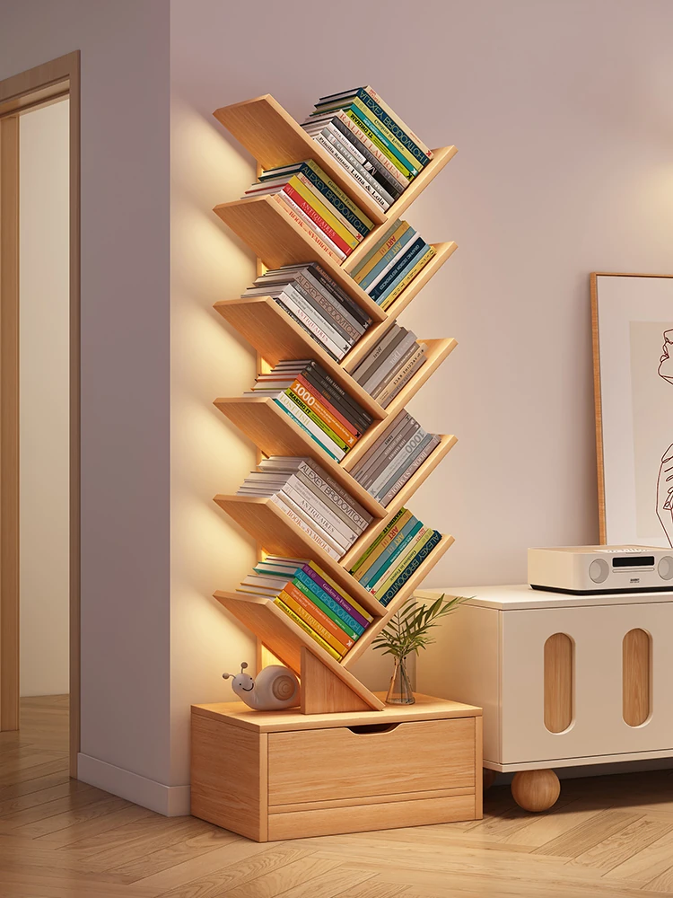 Stylish Tree-Shaped Bookshelf and Storage Rack - Space-Saving Floor Cabinet for Home Living Room, Slim Wall-Mounted Organizer, Ideal for Small Spaces and Easy Storage Solutions