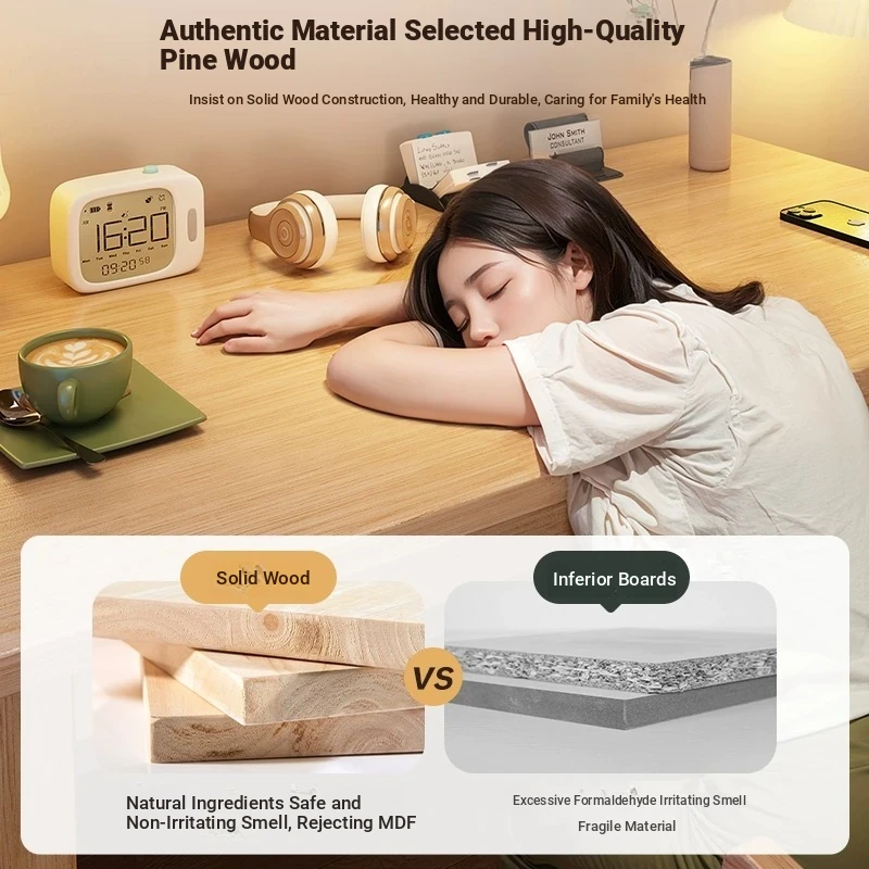 Solid Wood Study Desk for Home - Simple Rectangular Adult Learning and Office Table, Perfect for Bedrooms and Workspaces