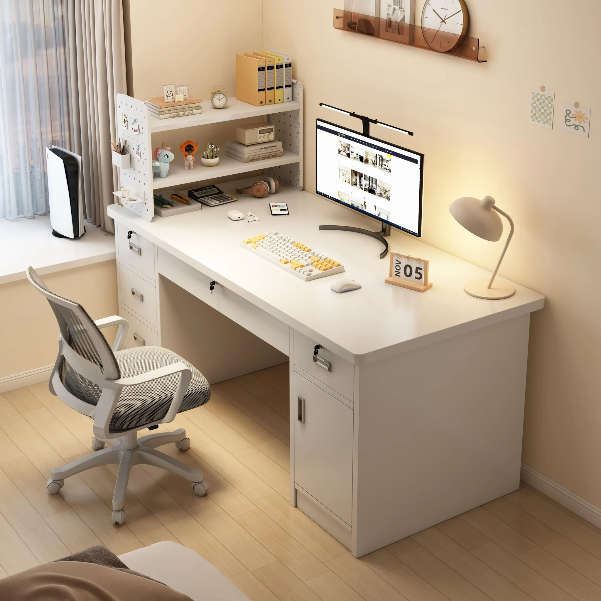 Multipurpose Desk with Bookshelf for Students - Compact Home Office Table for Small Spaces, Ideal for Girls' Bedrooms, Simple and Stylish Computer Workstation