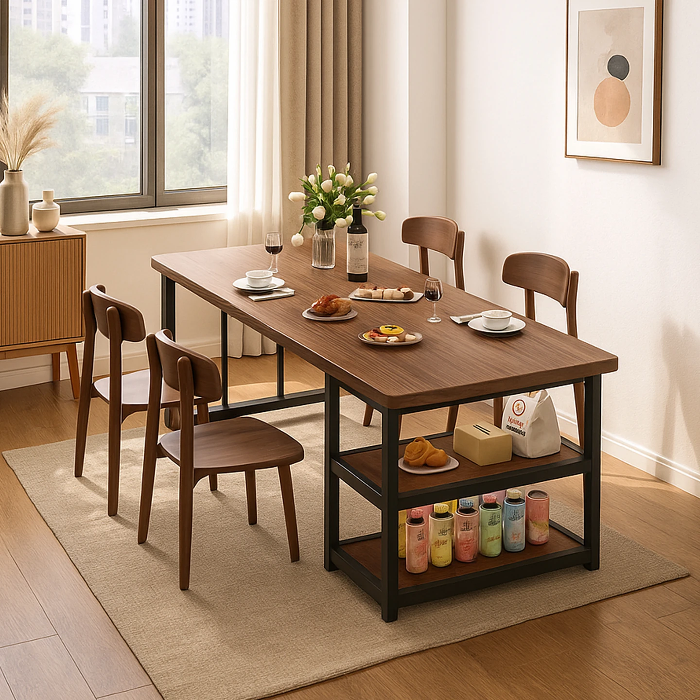 Modern Minimalist Dining Table and Chair Set for Small Spaces - Versatile Rectangular Table with Storage for Dining, Meeting, and Relaxation Areas