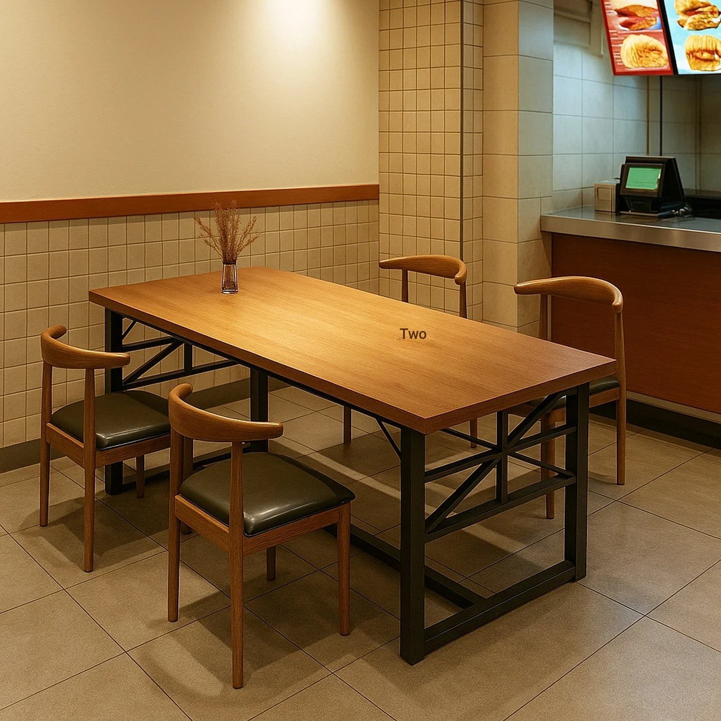 Commercial Dining Table Set for Restaurants, Fast Food Outlets, and BBQ Shops - Rectangular Table and Chair Combination for Optimal Space Utilization and Customer Comfort