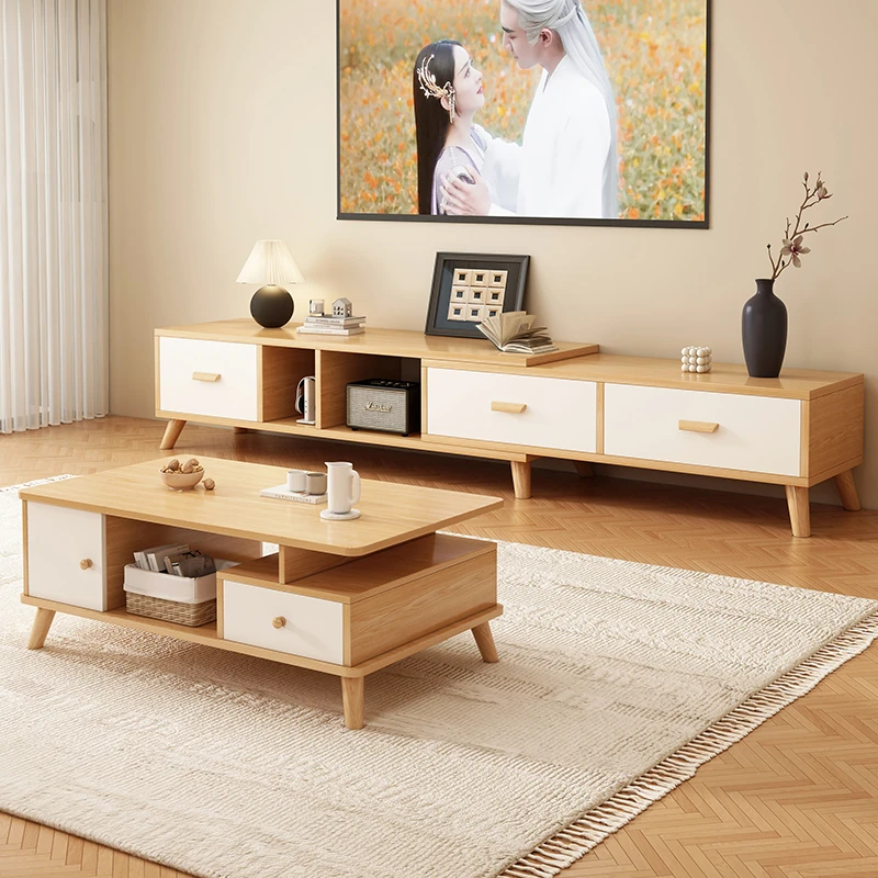 2025 New Modern Minimalist Expandable TV Stand & Coffee Table Set for Small Apartments - Stylish and Functional Living Room Furniture