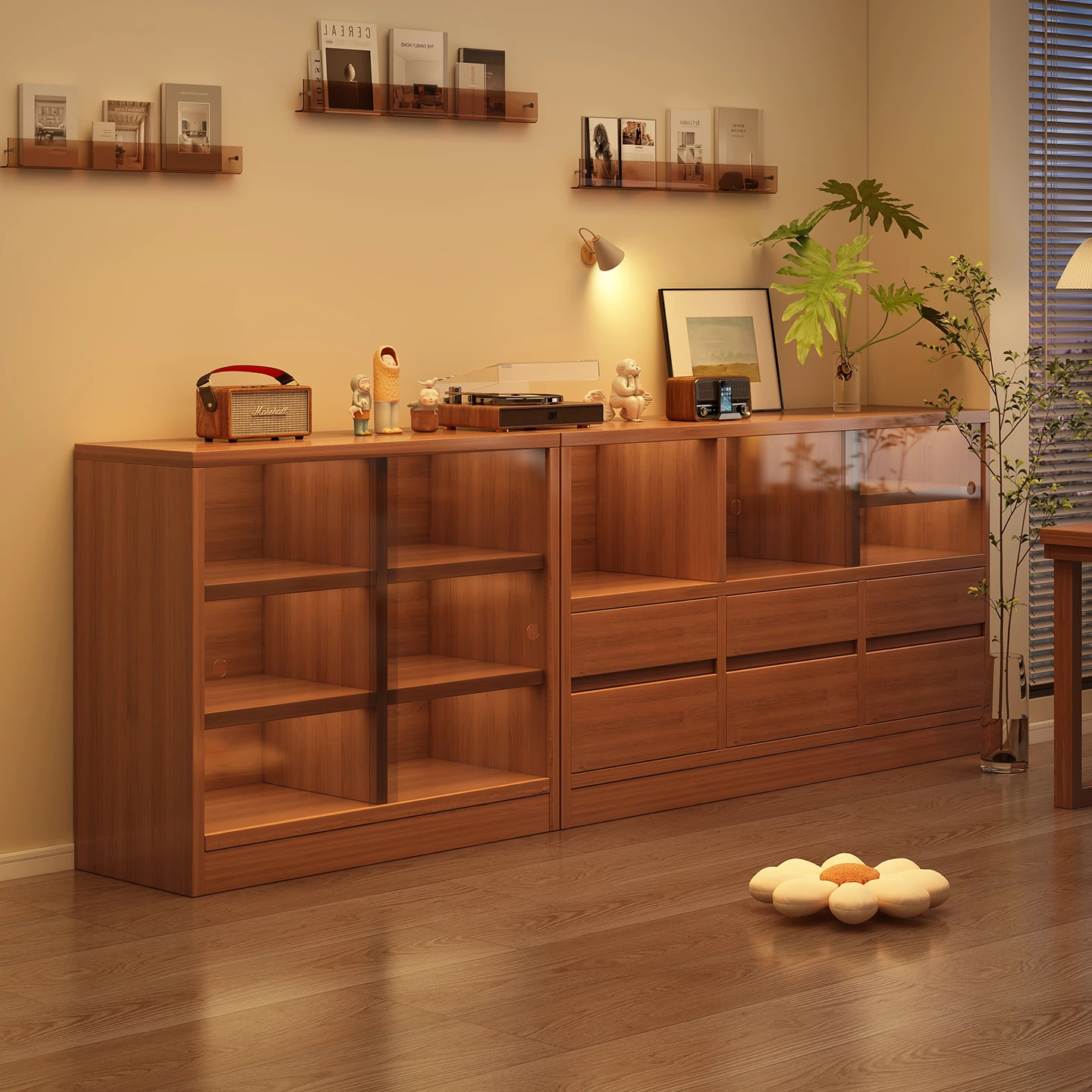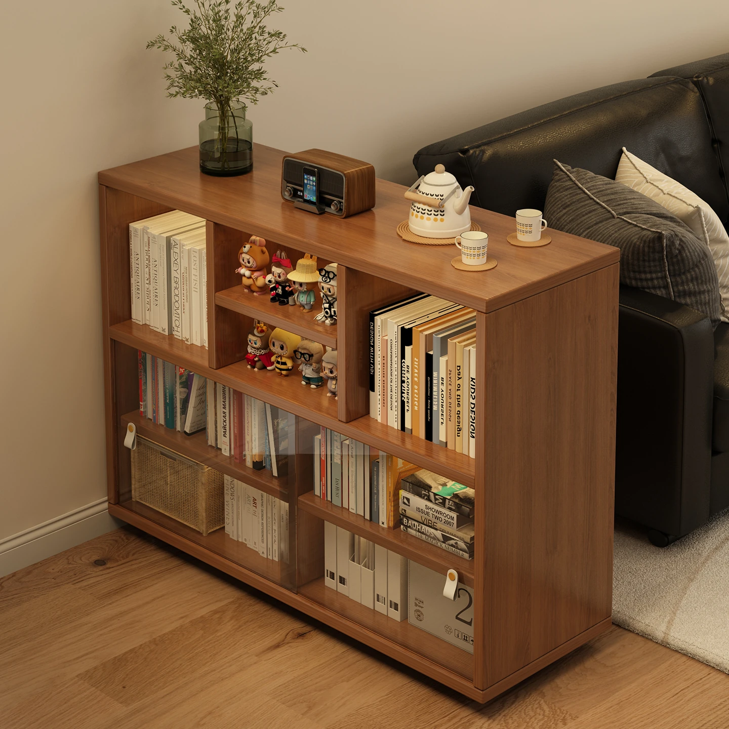 Solid Wood Bookshelf - Floor-standing Low Cabinet for Students, Dustproof Book Rack, Japanese Style Combination Unit, Living Room TV Cabinet, Storage and Toy Organizer.