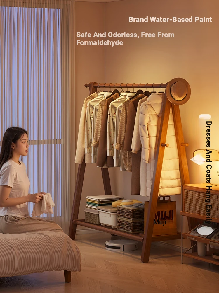 Solid Wood Freestanding Coat Rack - Stylish and Functional Clothes Hanger for Bedroom and Home Use, Easy to Assemble, Perfect for Organizing and Drying Clothes Indoors