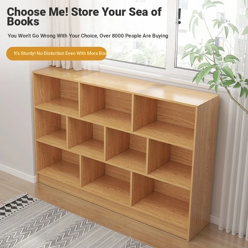 Versatile Floor Standing Bookshelf - Perfect Storage Solution for Bedrooms, Dorms, and Kindergartens – Stylish and Functional Bookcase for Easy Organization and Space Saving