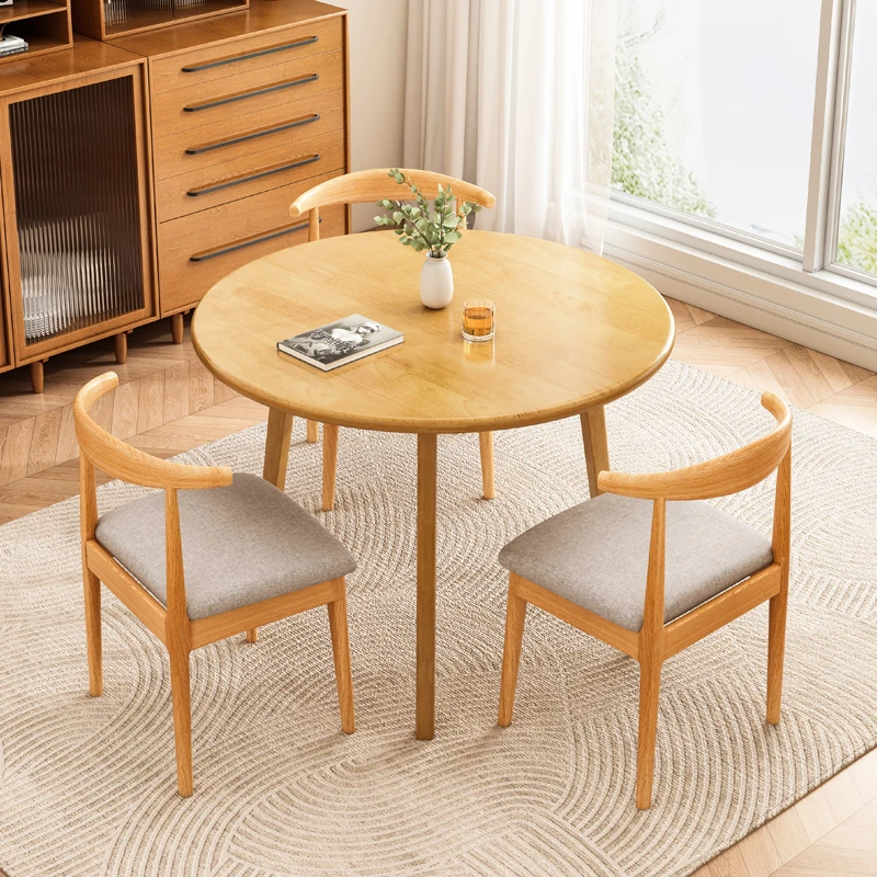 Solid Wood Small Dining Table Set - Perfect for Home, Cafés, and Breakfast Nooks - Compact Round Table and Chairs for Dining, Lounge, and Reception Areas