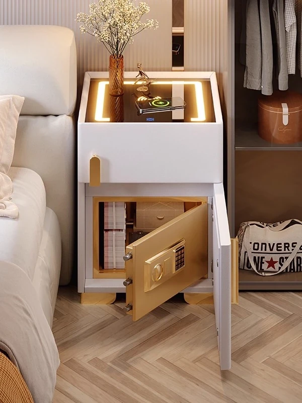 2025 New Luxury Smart Bedside Table with Integrated Safe - Multifunctional Storage Solution for Home Bedrooms