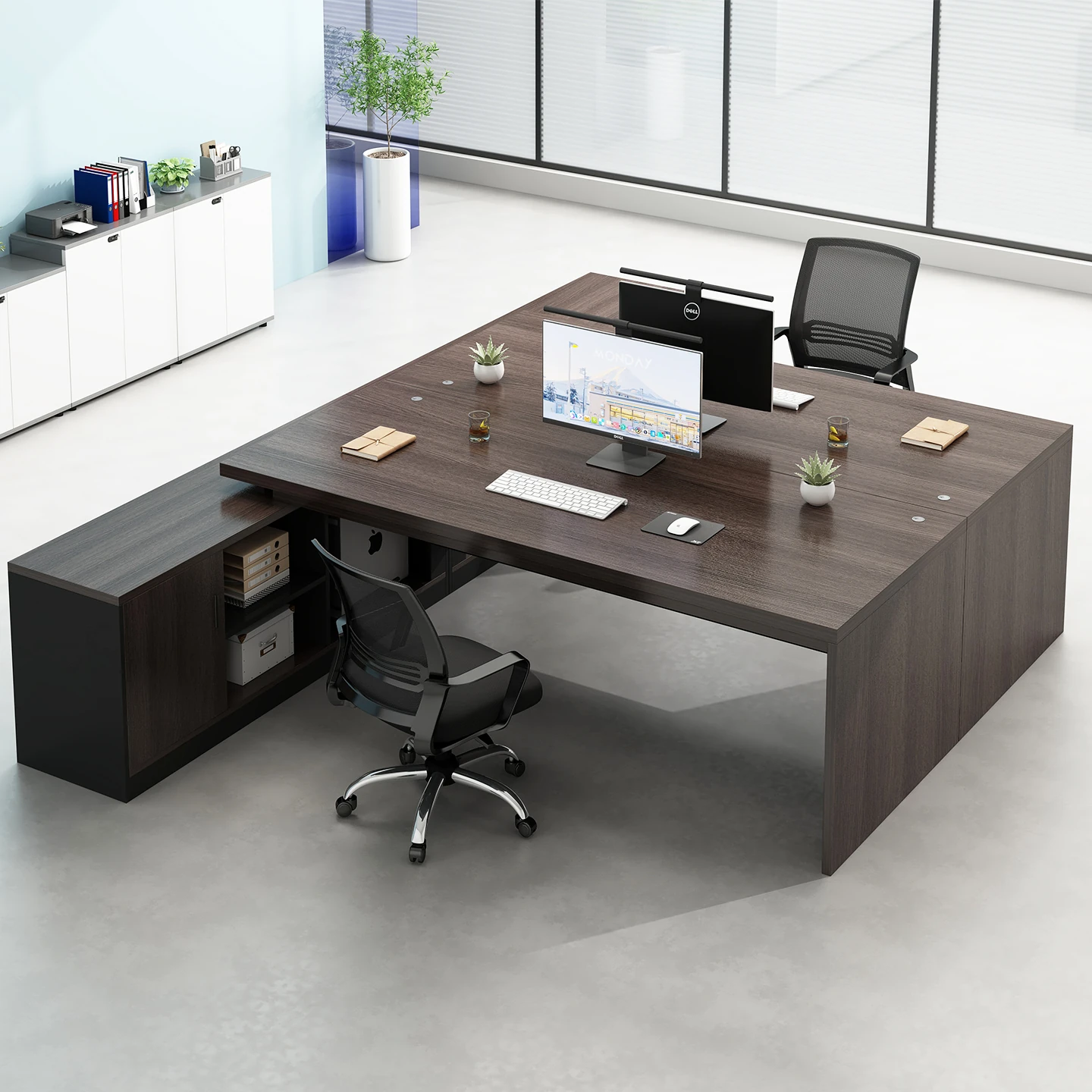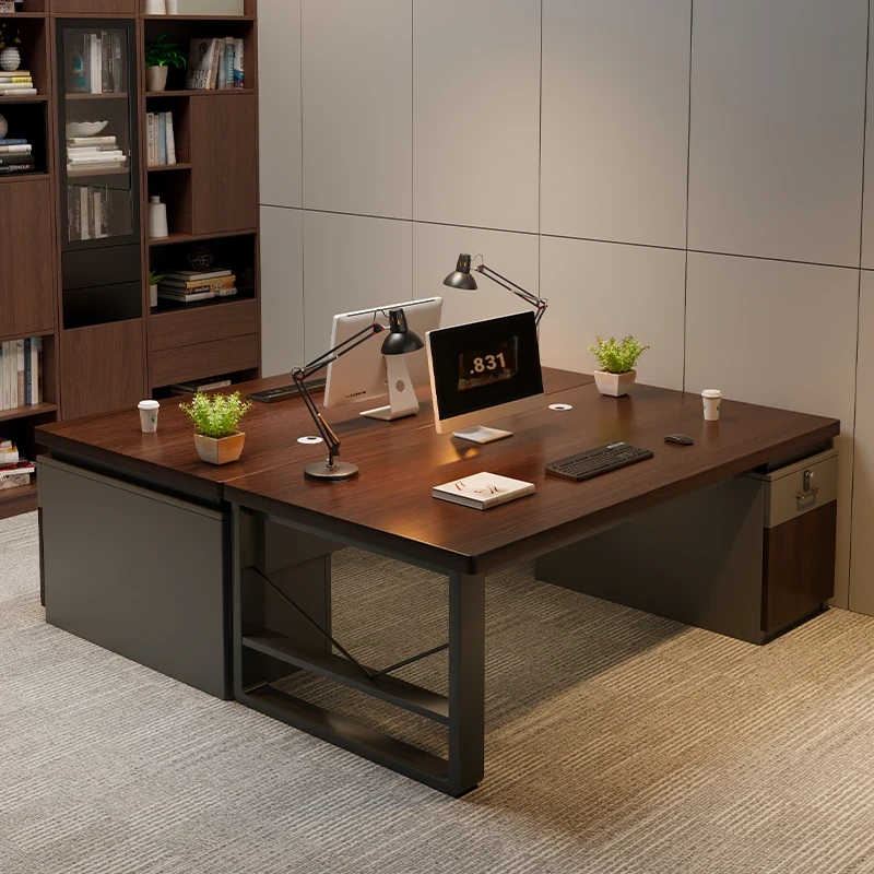 Modern Double Workstation Desk Set for 2 - Face-to-Face Office Desk with Storage Cabinets, Perfect for Employee Collaboration and Finance Teams