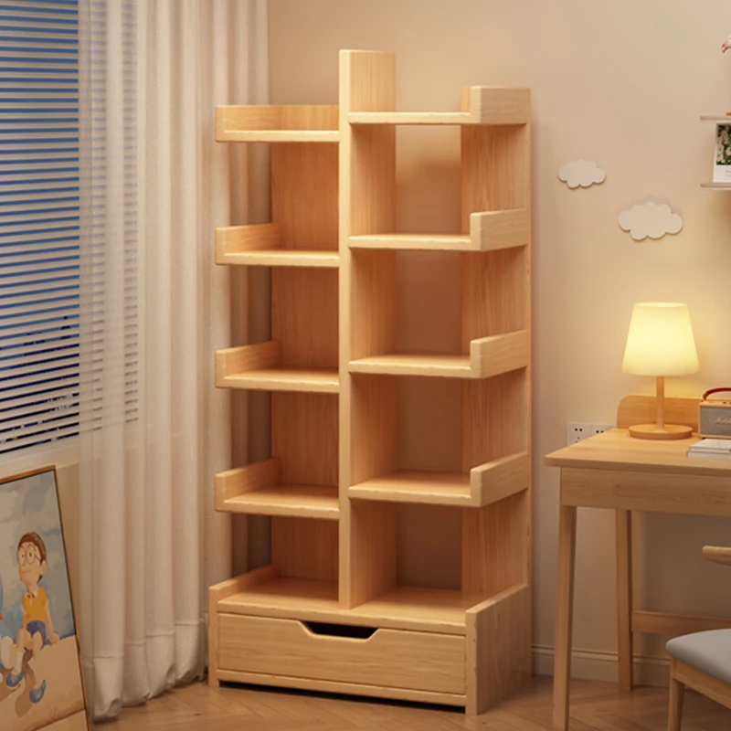 Solid Wood Bookshelf and Storage Rack - Narrow Corner Unit for Wall-mounted or Floor Use, Simple Bookcase and Corner Storage Solution, Perfect for Organizing Your Space