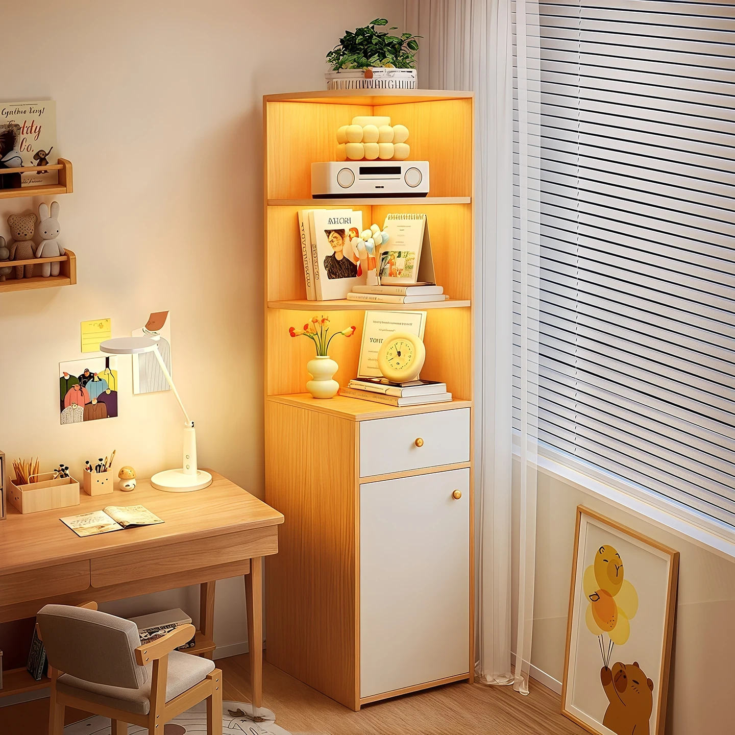 Corner Bookshelf and Storage Unit - Versatile Floor-Standing Organizer for Students, Bedroom, and Living Spaces - Wall-Mounted Corner Cabinet for Efficient Storage Solutions