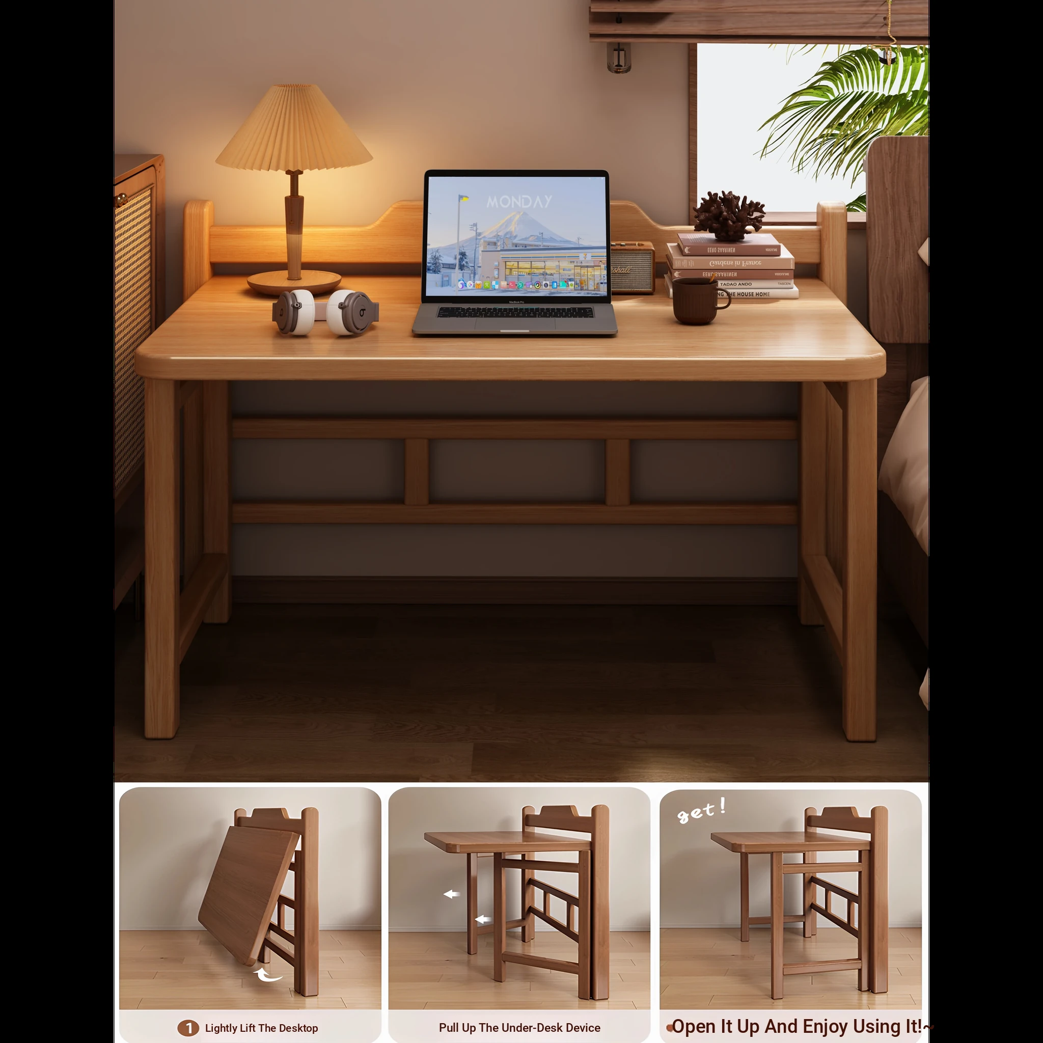 Foldable Solid Wood Desk - No Installation Required, Perfect for Home, Study, and Office Use. Ideal for Students and Small Spaces, Easy to Place Against the Wall. Compact and Stylish Single Workstation for Your Bedroom or Study Area.