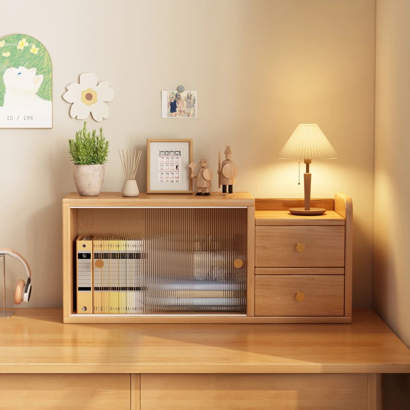 Multifunctional Desktop Bookshelf with Cabinet Doors - Compact Multi-Layer File Organizer and Storage Rack for Office Use, Simple and Stylish Bookcase for Efficient Space Management