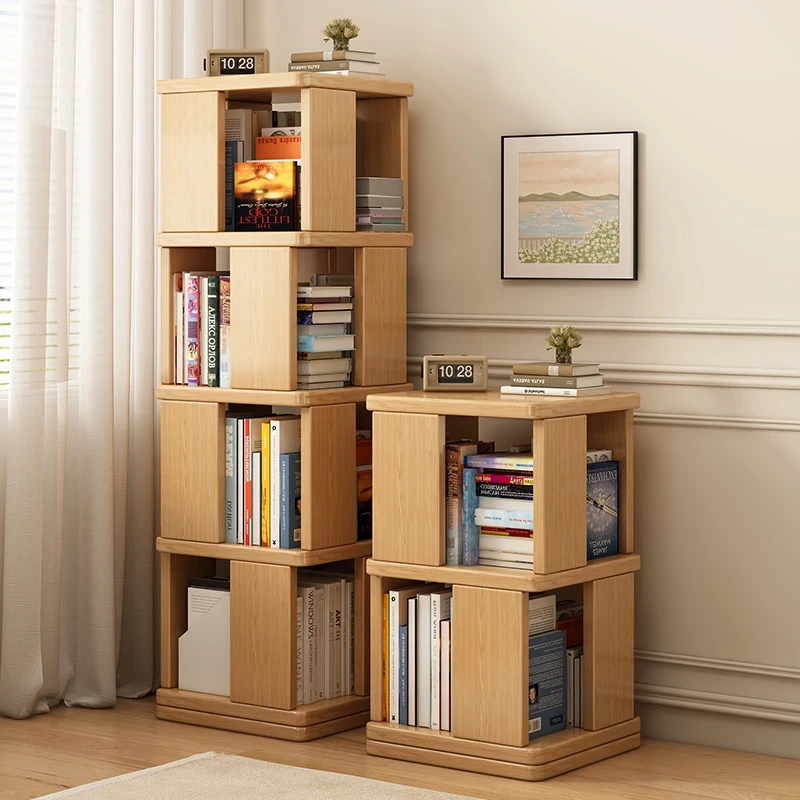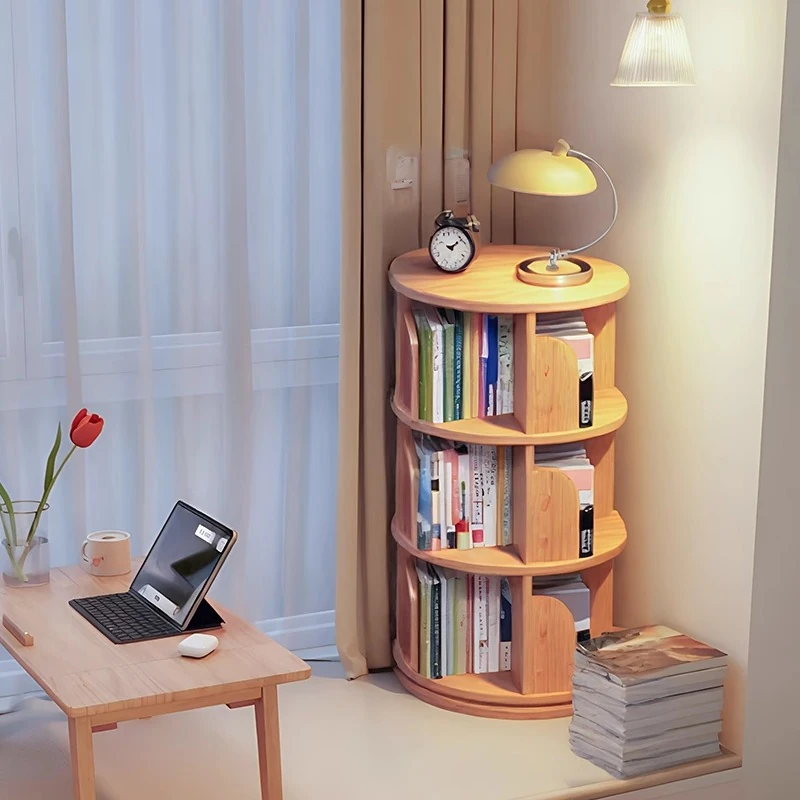 360-Degree Rotating Solid Wood Bookshelf - Space-Saving Round Storage Cabinet for Bay Windows, Floor-to-Ceiling Design, Perfect Corner Bookcase for Bedside Organization