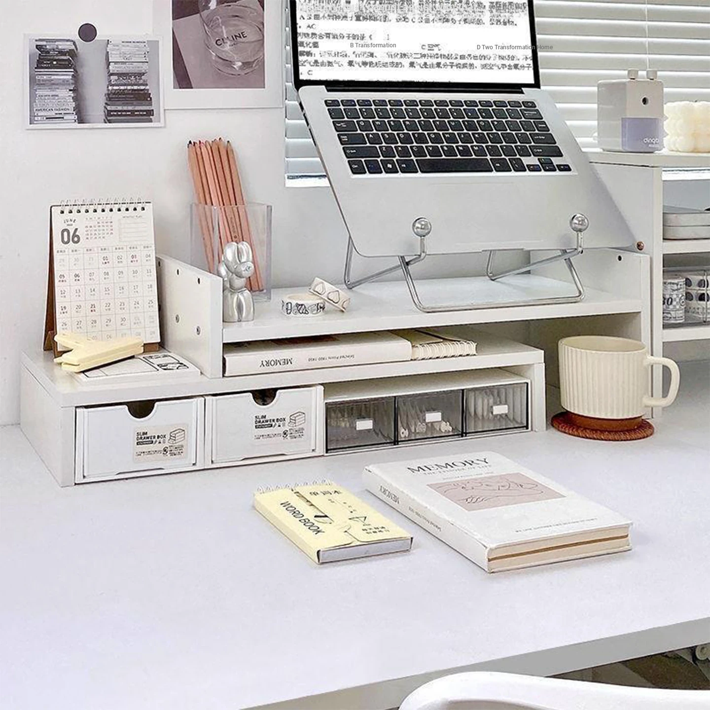 Height Adjustable Laptop Stand - Office Desk Organizer for Monitors and Notebooks - Stylish & Functional Workspace Storage Solution
