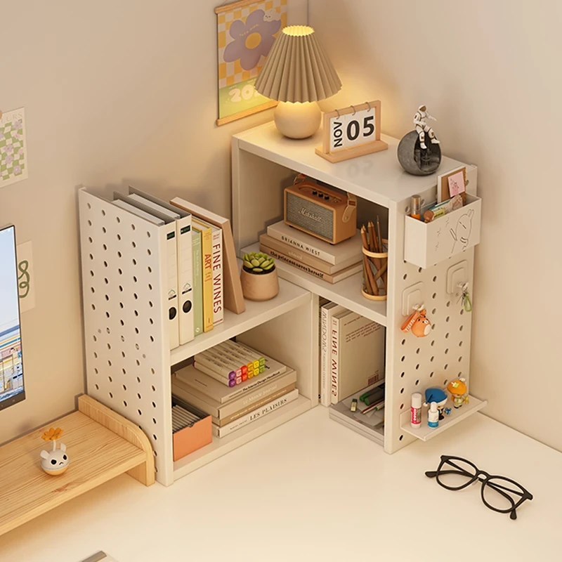 Corner Desk Organizer with Pegboard - Stylish Storage Shelf for Home and Dorm, Perfect Small Bookcase for Students, Ideal for Desk and Room Organization